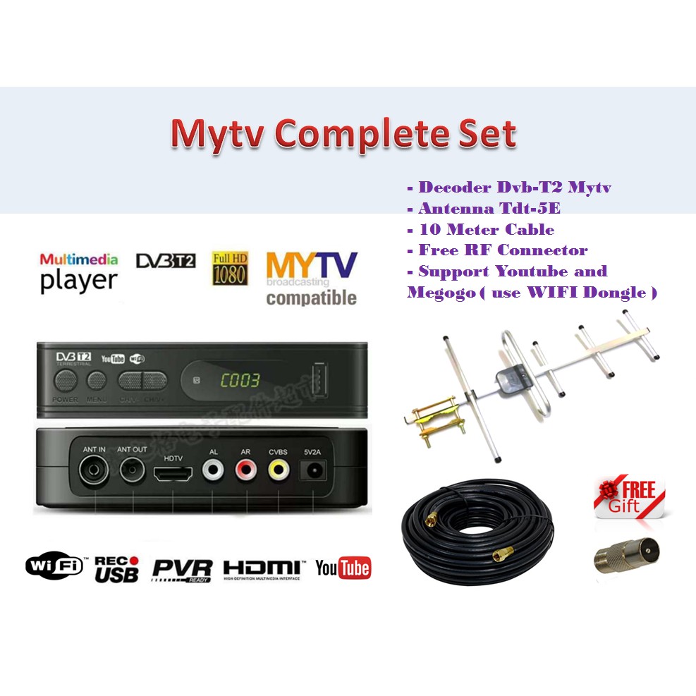 Mytv Full Complete Set ( Decoder + Antenna TDT-5E + 10M Cable ) Support Youtube + Wifi | Shopee Malaysia